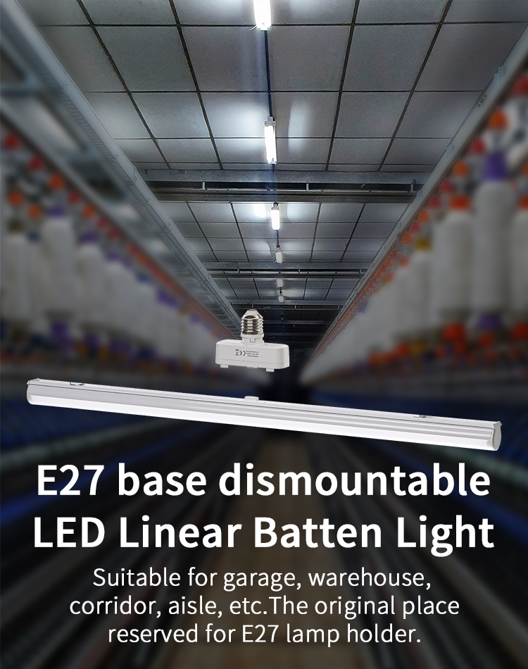 E27 base dismountable LED linear batten light