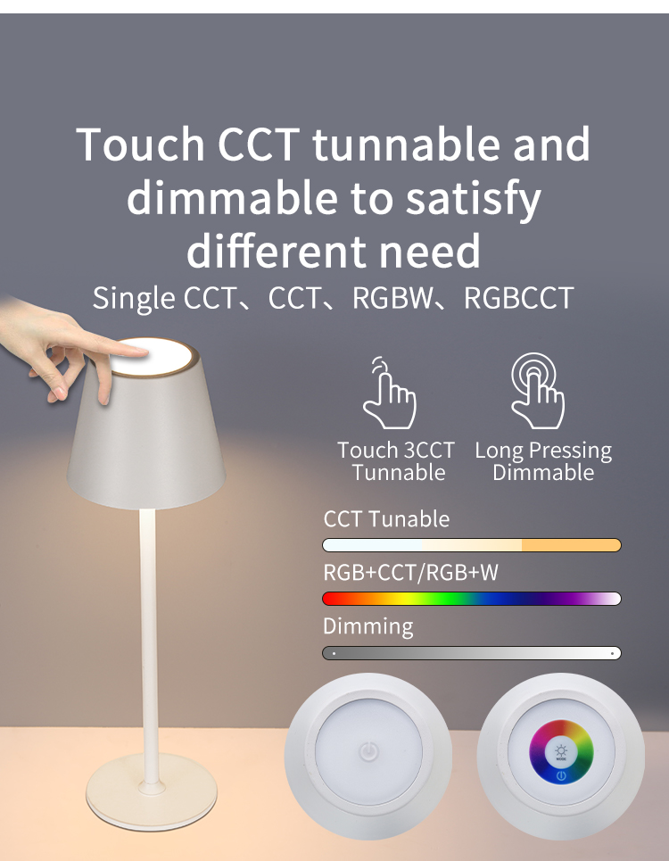 Touch CCT Tunnable,Long Pressing Dimmable,Die-casting Aluminum Body,Rechargeable Portable Design